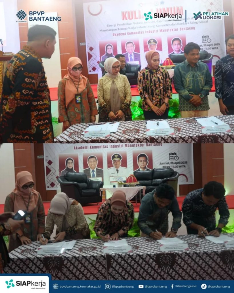 BPVP Bantaeng kembali melakukan penandatanganan MOU dengan Akademi Komunitas Industri Manufaktur Bantaeng dalam kegiatan Kuliah Umum yang di hadiri oleh Bapak Bupati Bantaeng, pihak Huadi Nickel Alloy Bantaeng, dan para stakeholder. BPVP Bantaeng kembali melakukan komitmen untuk meningkatkan kompetensi kualitas SDM sehingga kompetensi yang didapatkannnya sesuai dengan kebutuhan industri.